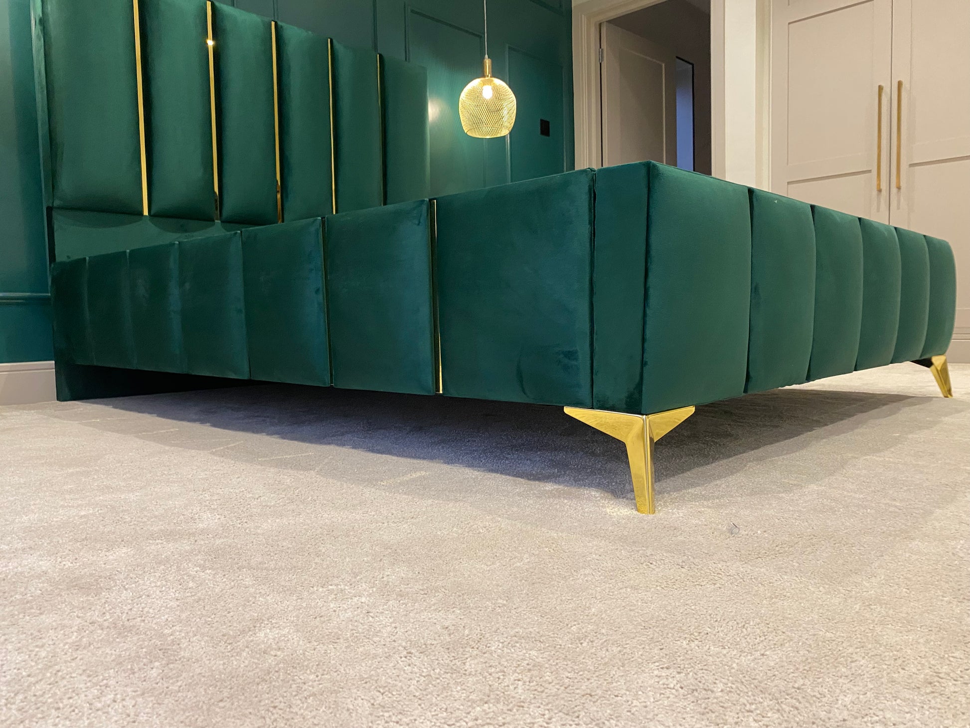 The gold metal design on the headboard makes this bed one of a kind. The new design gold legs add a touch of elegance and luxury to the overall aesthetic.
