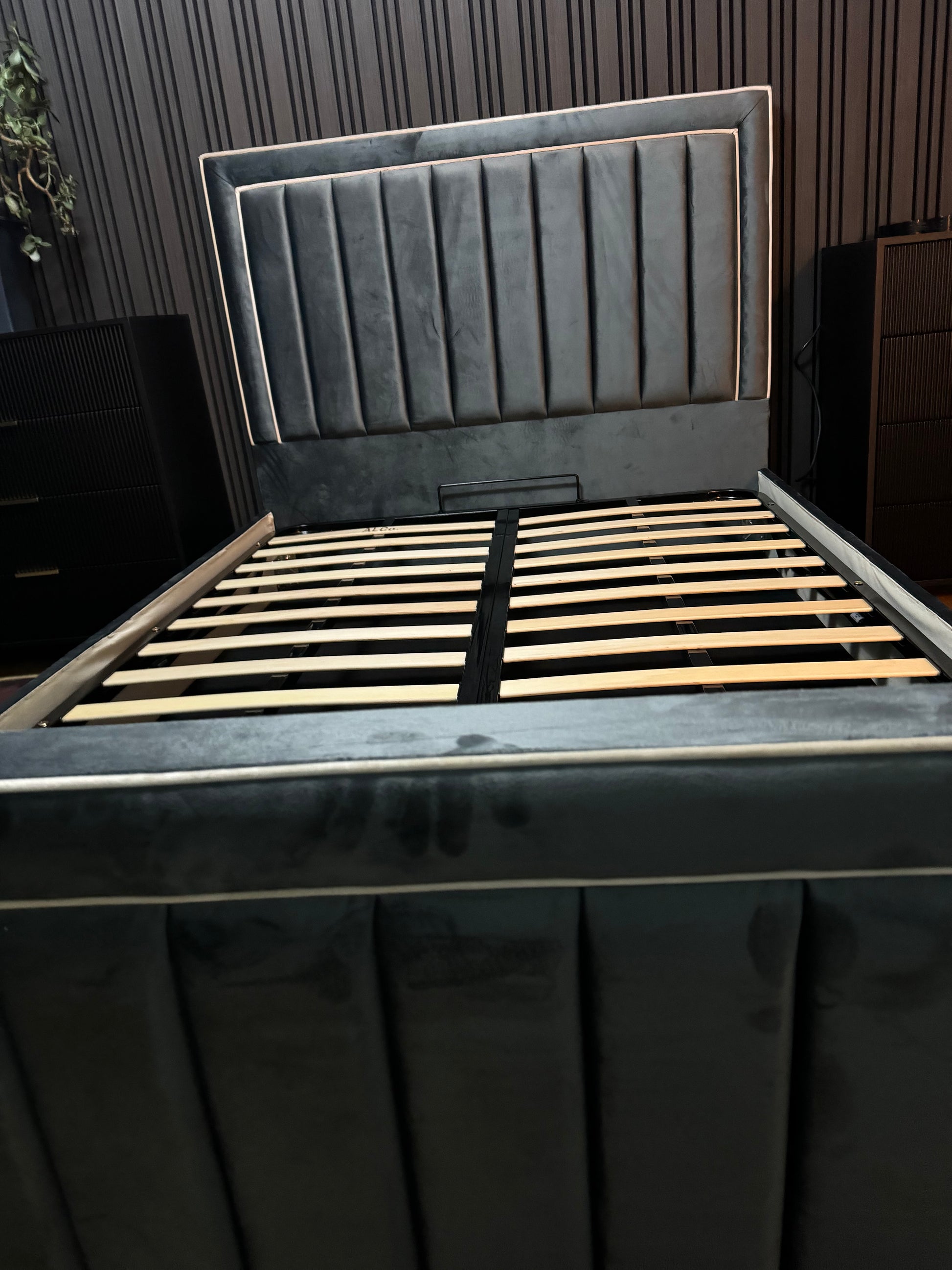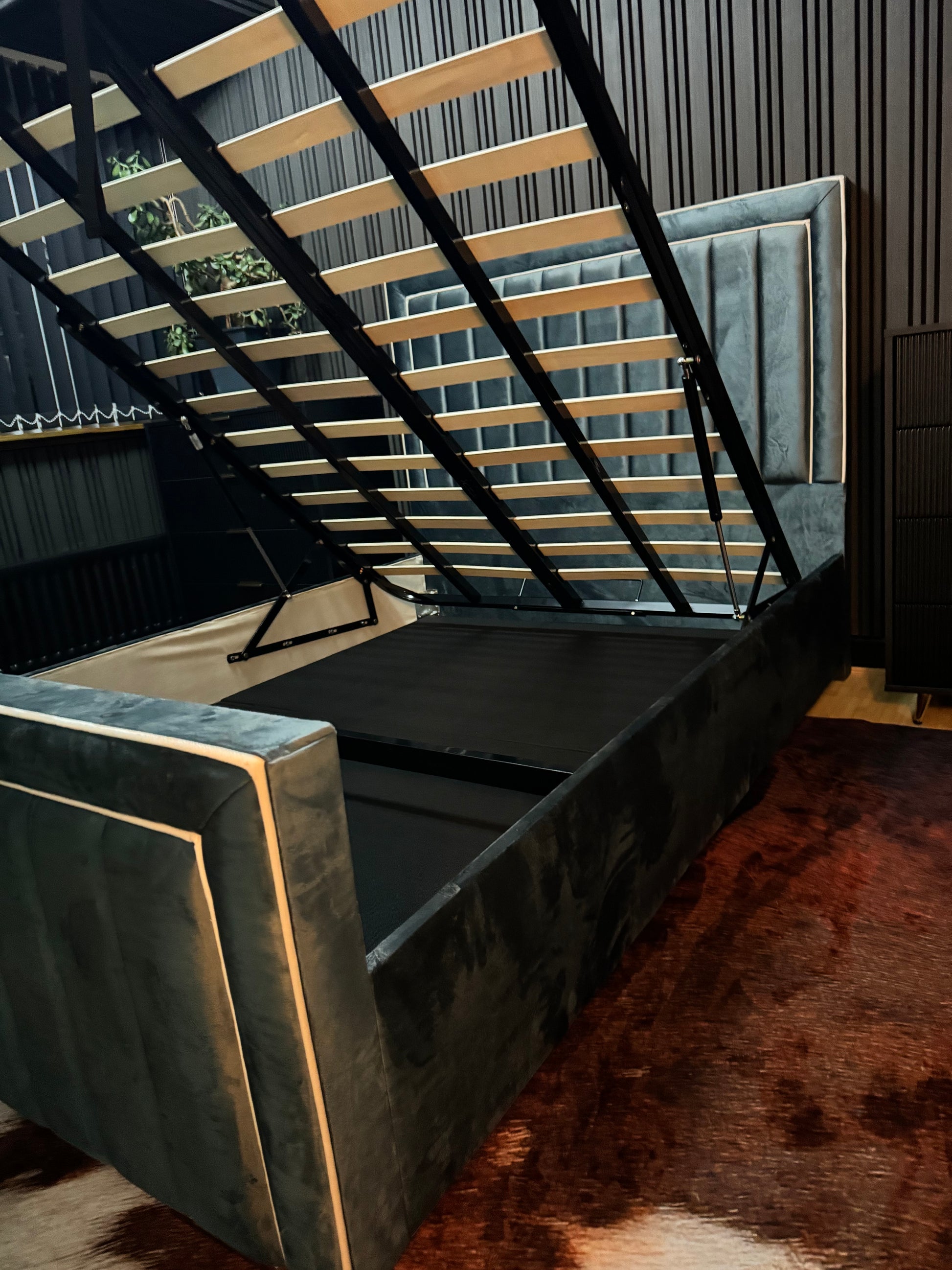 Introducing the Sephora Bed - the perfect blend of elegance and functionality. Featuring a panel line design and an elegant piping design, this bed exudes sophistication. With a 54 inch high headboard and the option for gas lift ottoman storage, it offers both style and practicality. Customize the piping and main bed color to your liking . Available in different headboard heights.