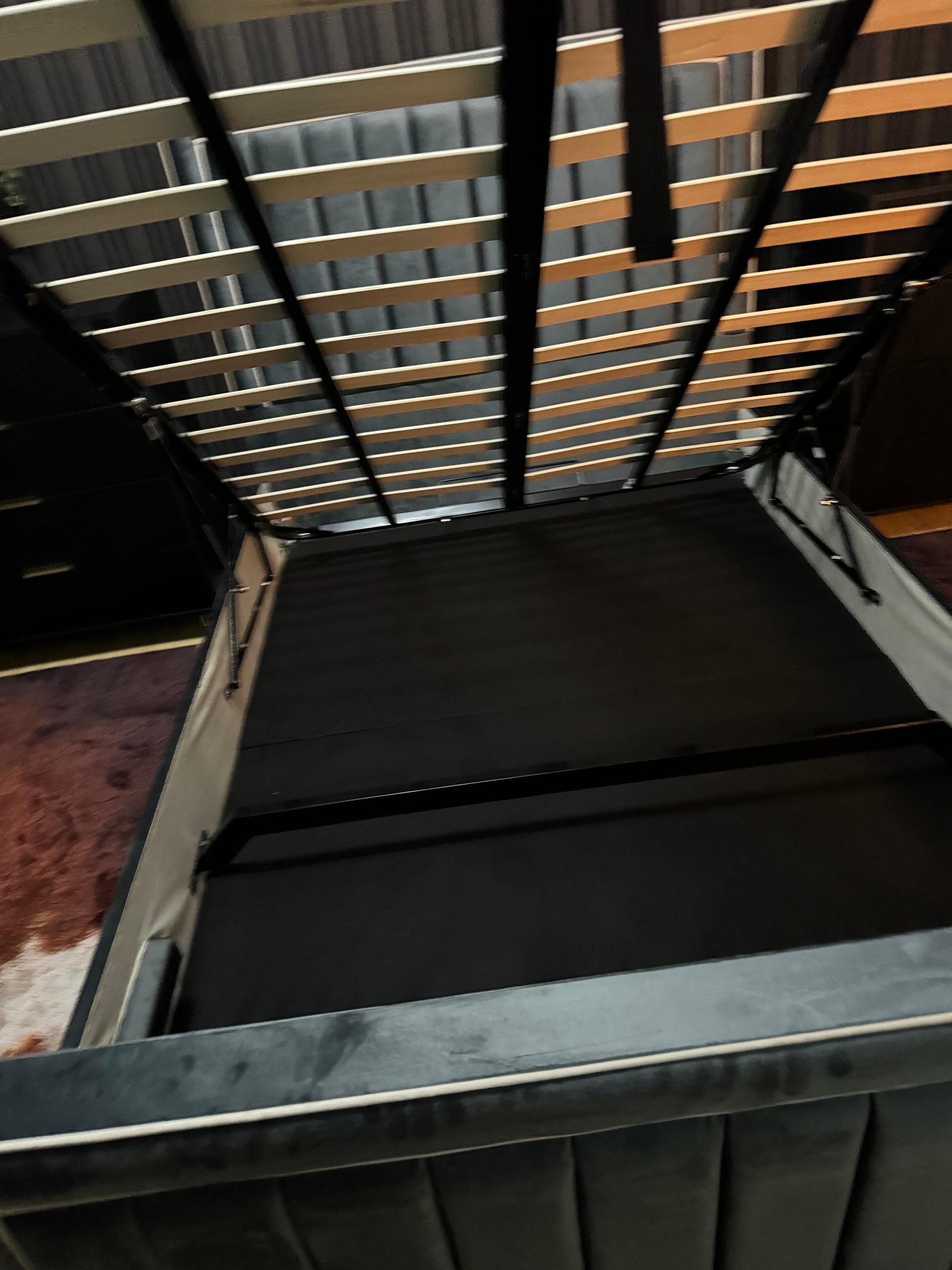 Main Picture shows Steel Plush Velvet with White piping and ottoman storage